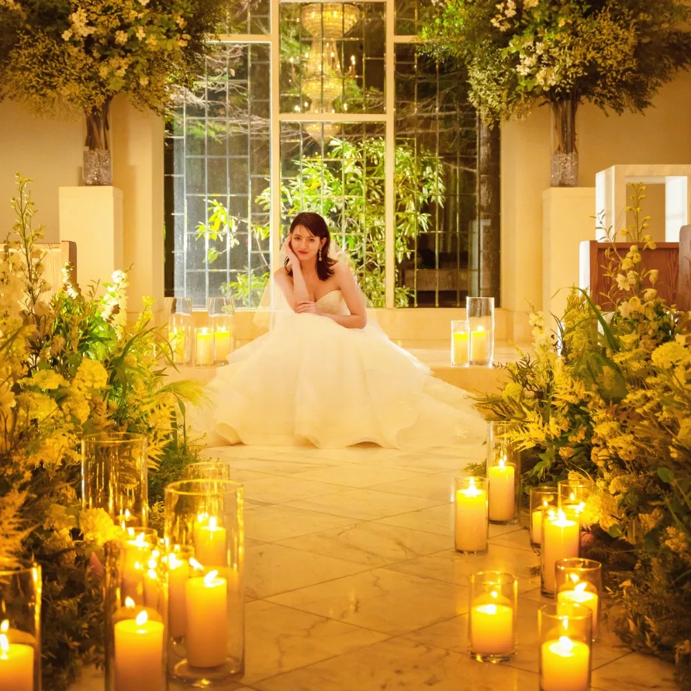 祭壇のガラス越しの木々の緑や温かな陽光に包まれた心地よいチャペルでロマンティックな挙式を。チャペル内に、そしてゲストの心にも響き渡る生演奏や、ゲストに参加していただくセレモニーなど、集う人の気持ちがひとつになります。