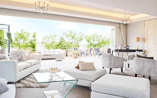広々としたテラスが隣接した快適な場所が、おふたりのゲストにお待ちいただくお部屋です。