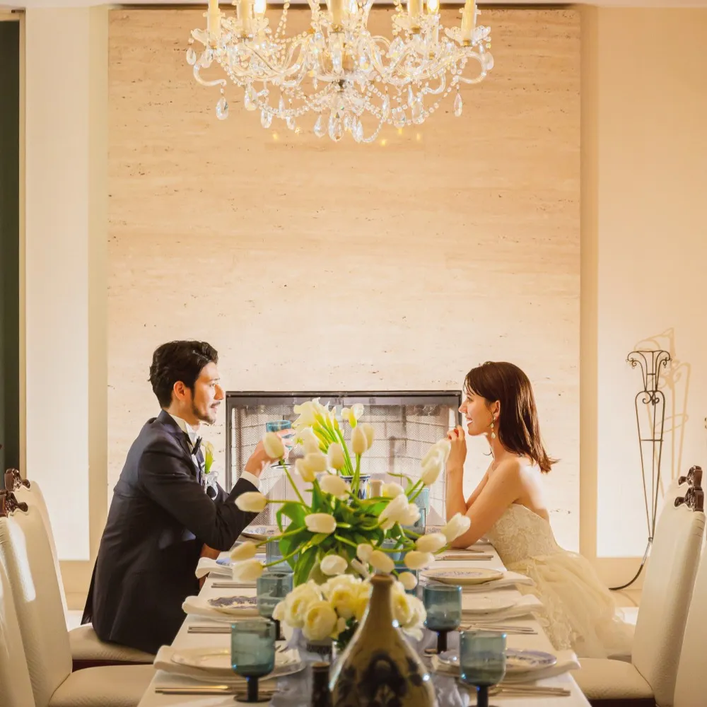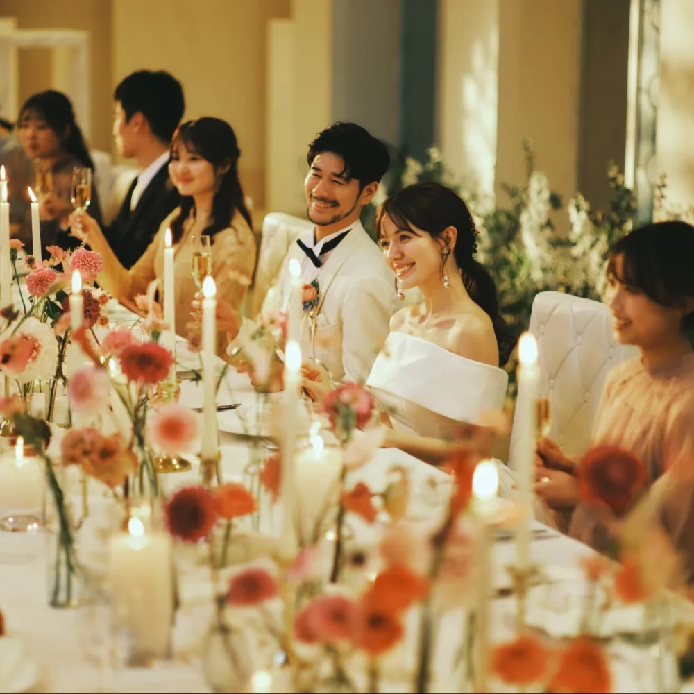 ごく親しい気の置けない人たちと一緒にテーブルを囲み、美味しいお料理やお酒、寛いだ会話を楽しむアットホームなパーティスタイルです。専用のレストランでは、おふたりとゲストの距離が近いので、気取らずカジュアルに過ごせます。