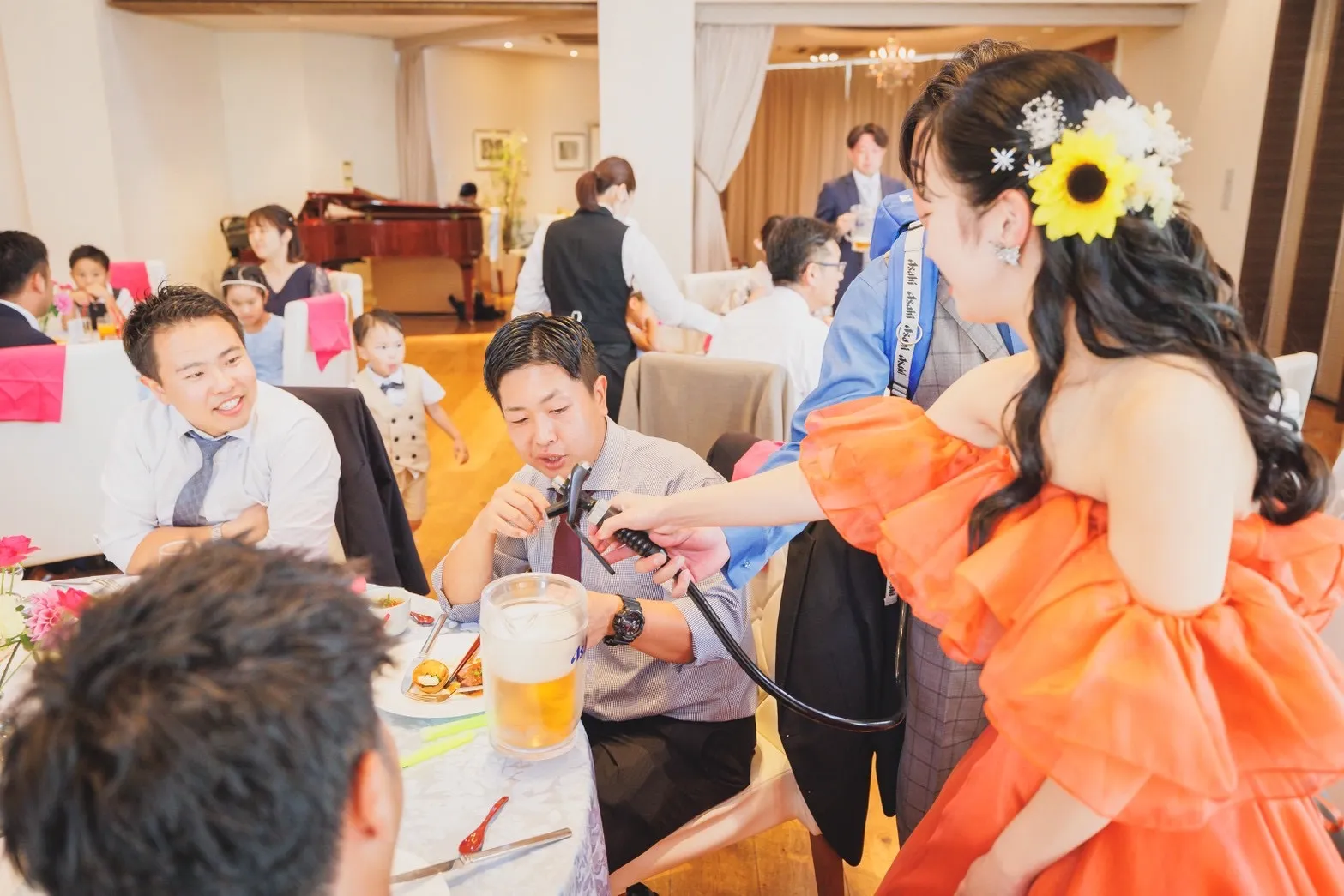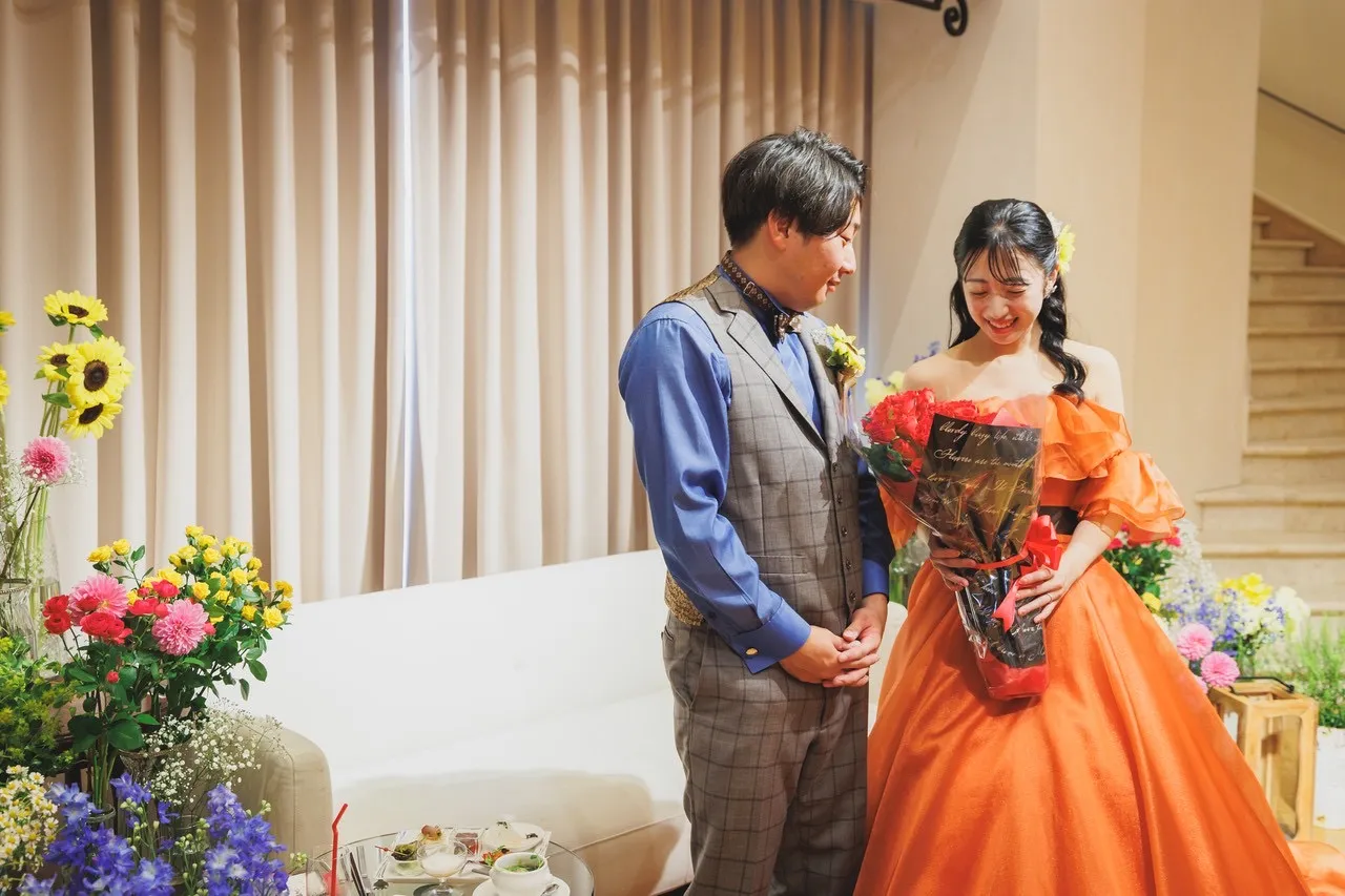 カラードレスは、パッと目を引く明るいオレンジに!