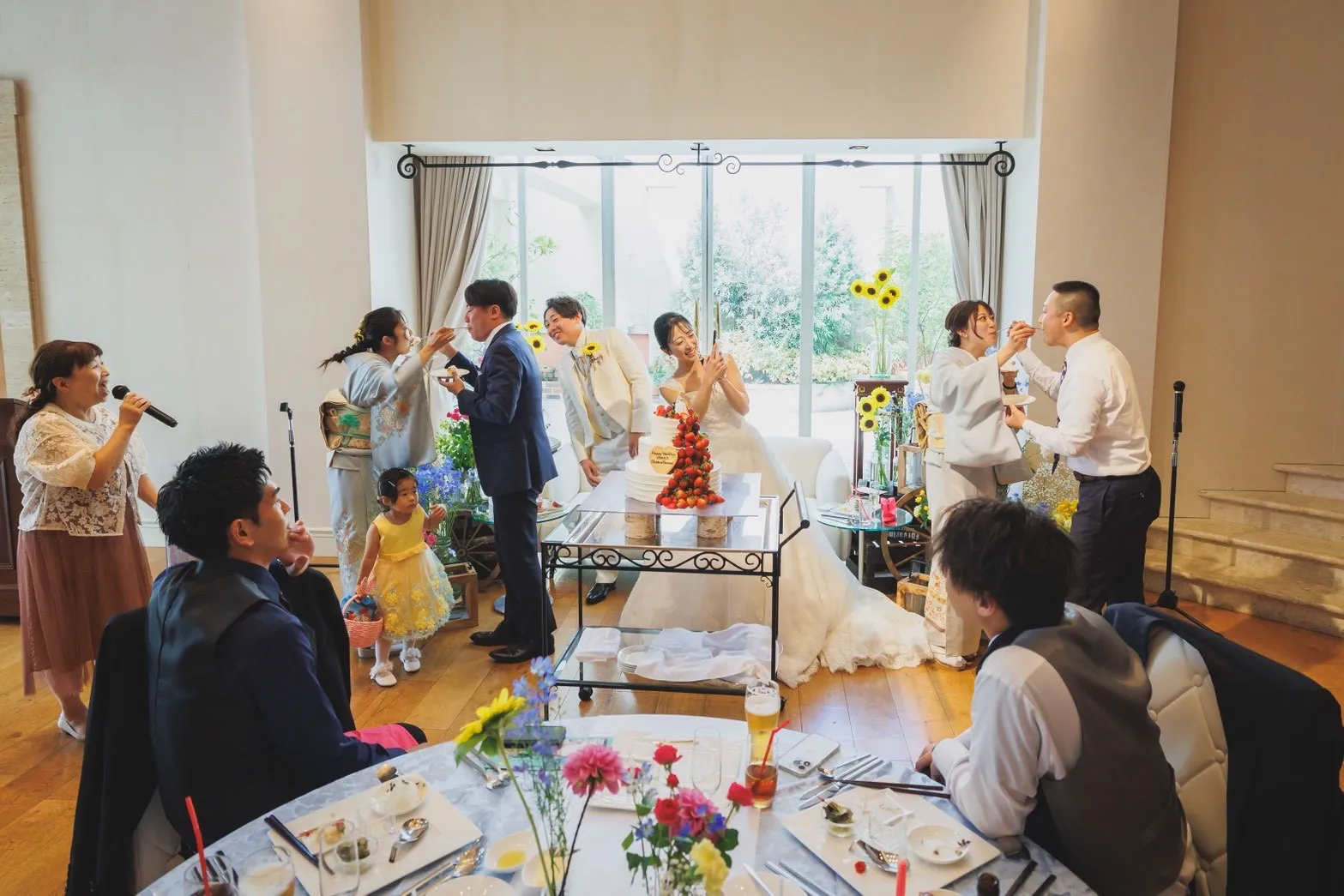 まずは、お二人の見本として新郎様のお兄様ご夫婦と新婦様の妹様ご夫婦にサプライズで食べさせ合いをしていただきました!