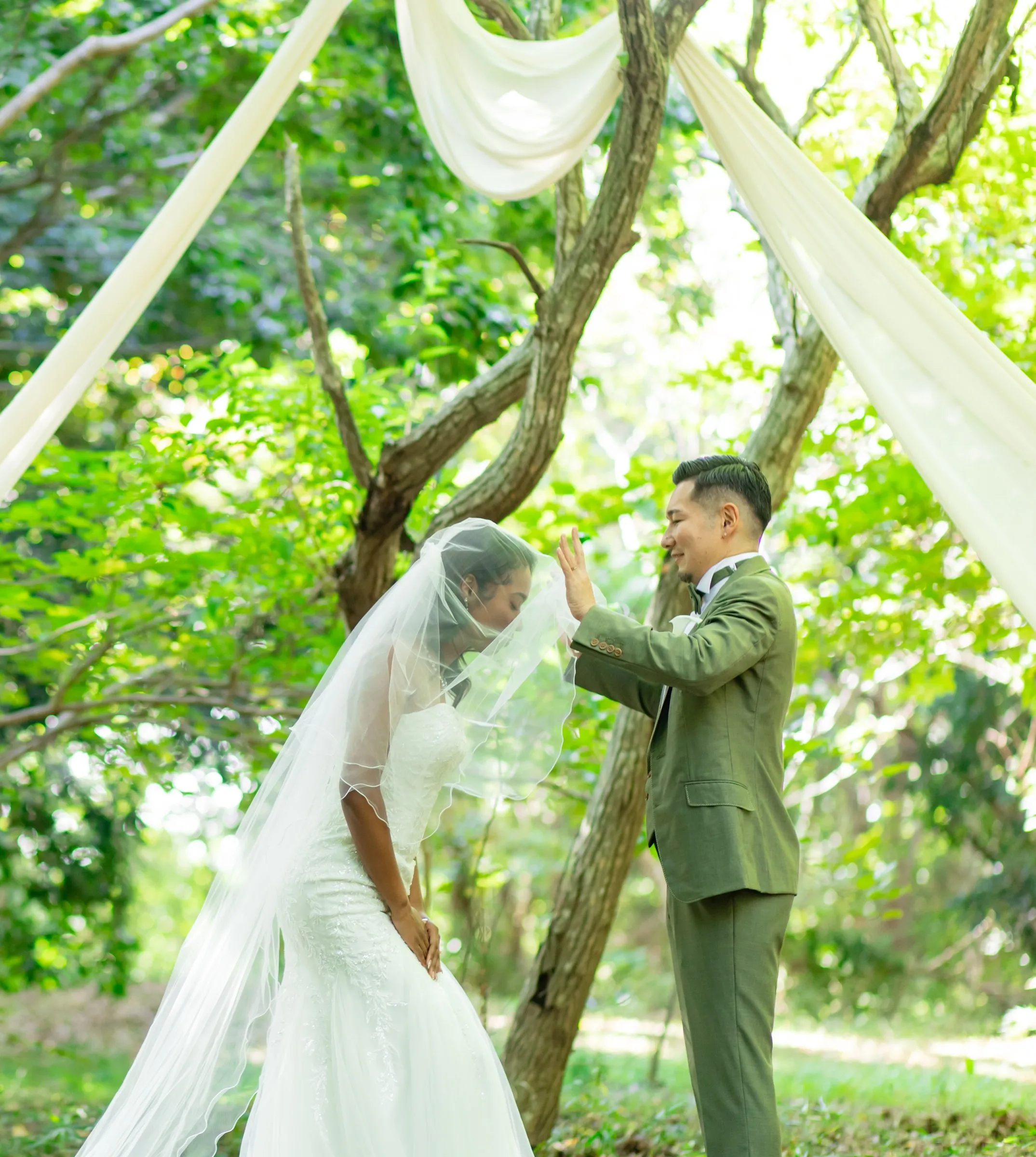 生涯守り抜くと誓ったご新郎様が ご新婦様のベールをあげる誓いの瞬間です