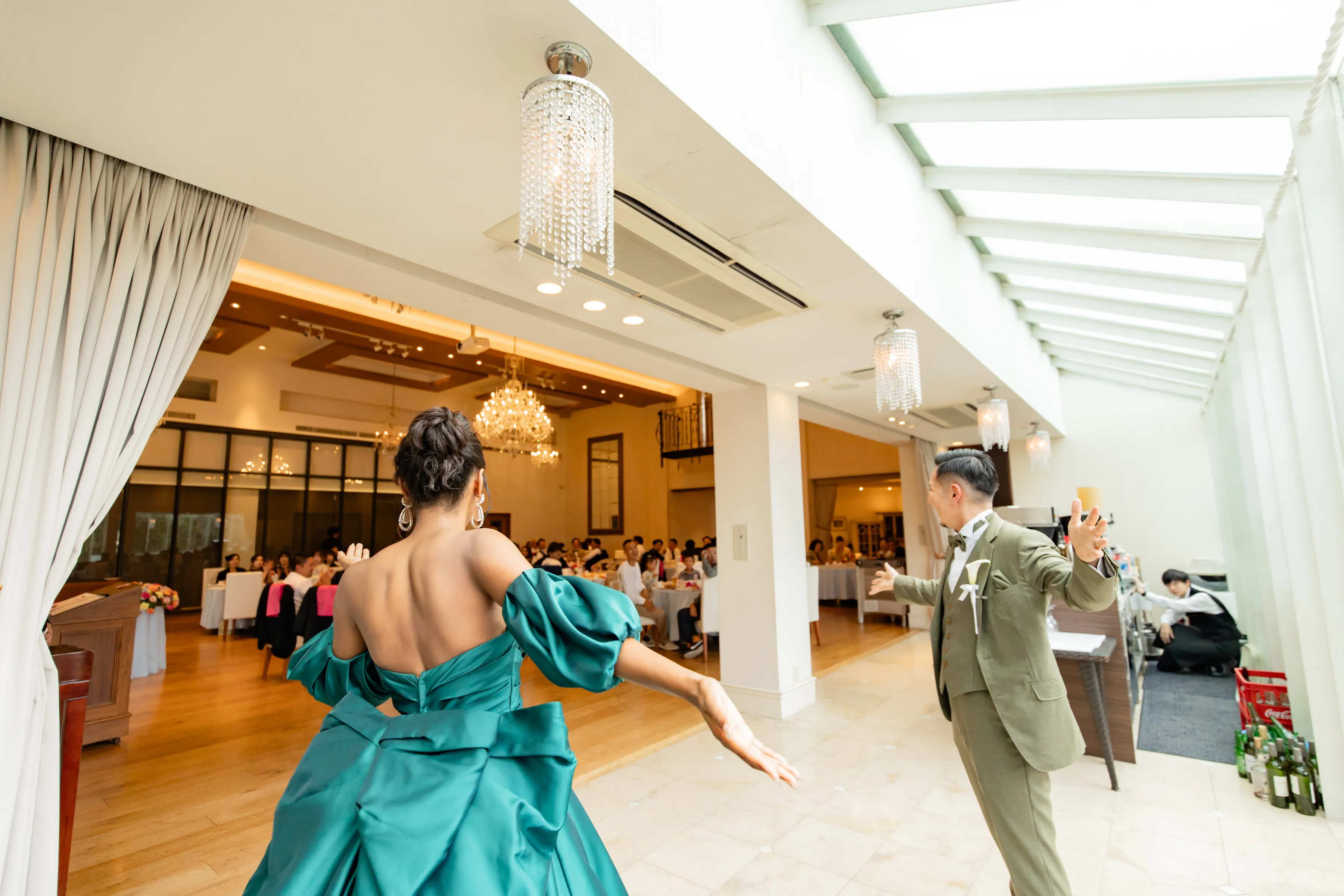 お色直し後の再入場は皆様の後ろから登場!