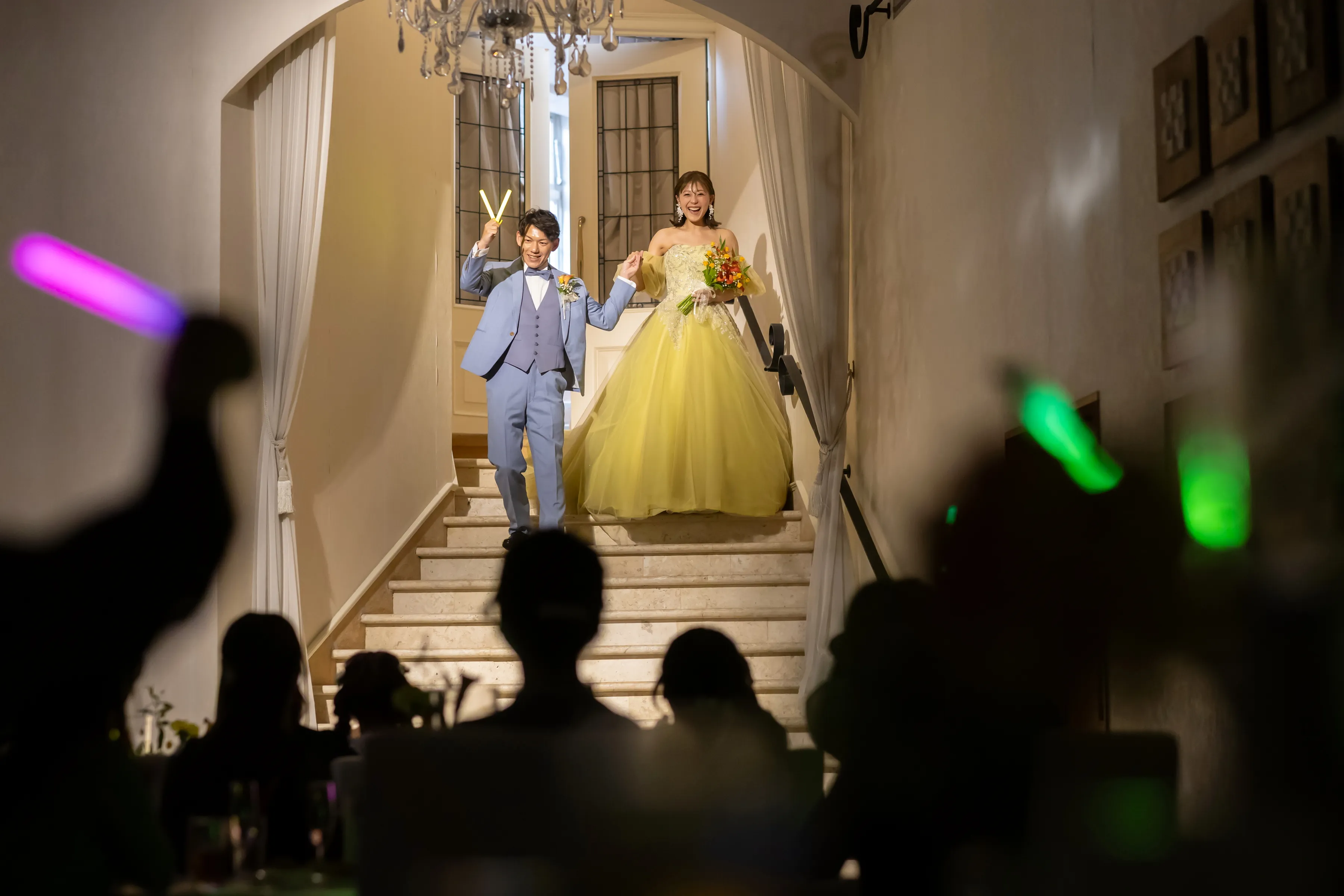 明るい笑顔が印象的なおふたりにぴったりなビタミンカラーの組み合わせ◎